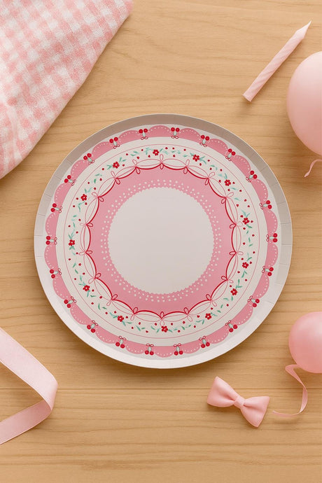 Pink Vintage Cherry Paper Plates Coquette Floral Birthday Party Plates 8" Dessert Plates for Birthday, Baby Shower or Picnic (8 pack)
