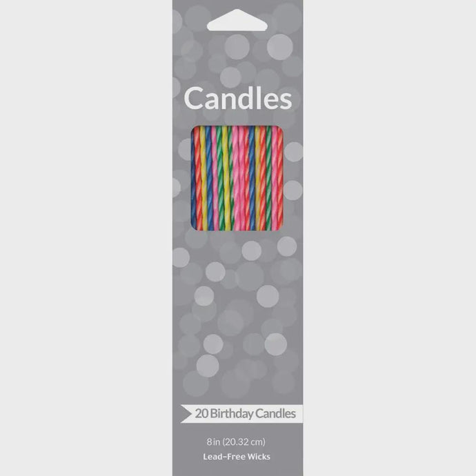 Striped Birthday Long Candles 20ct Bright Colorful Cake Candles for Parties, Celebrations and Cupcakes