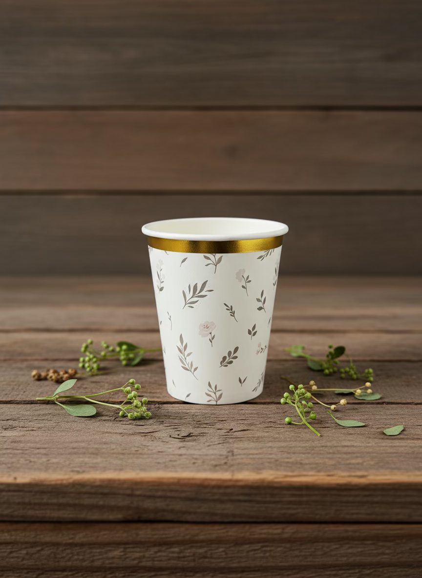 Celebrate life’s most special moments with our Floral Gold Rim 9oz Paper Cups, designed by Cherrysh Party! Featuring a delicate floral and foliage design with an elegant gold trim, these cups are ideal for baptisms, first communions, weddings, baby showers, birthdays, and garden tea parties.