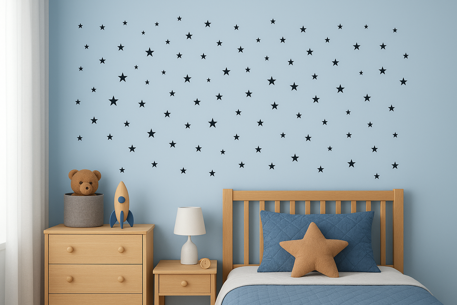 Features black stars in 3 sizes. These vinyl decals will bring your party décor to another dimension! These can be easily applied or removed, leaving no residue to your walls. It can be reused in your kids room or playroom, so the magic stays beyond the party day!