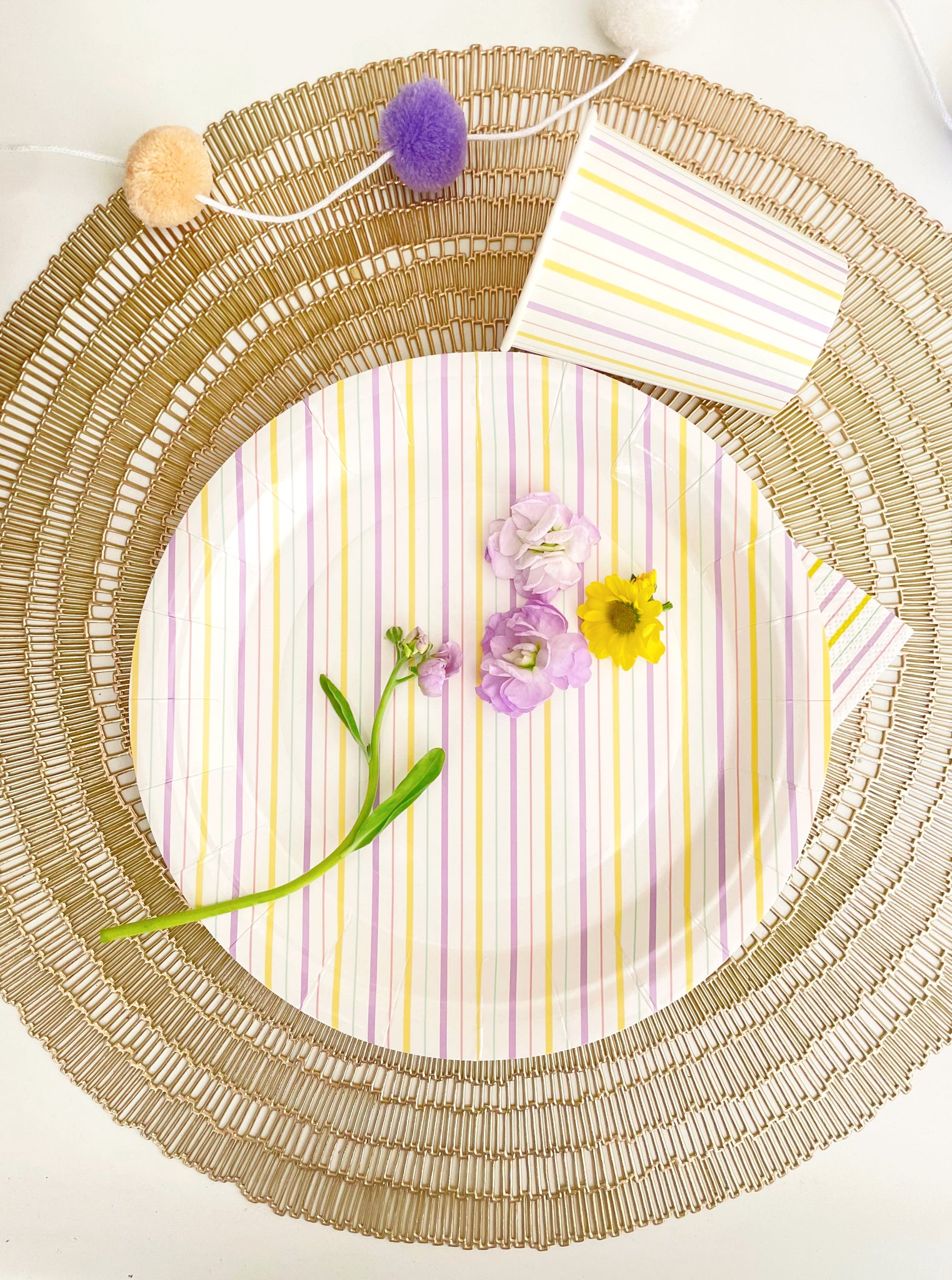 Multicolor Fine Stripes plates feature a sweet and graceful combination of pastel colors: lavender, mint and yellow. Perfect mix-and-match for Pooka Party collections as Magical Fairies or Sweet Unicorn!