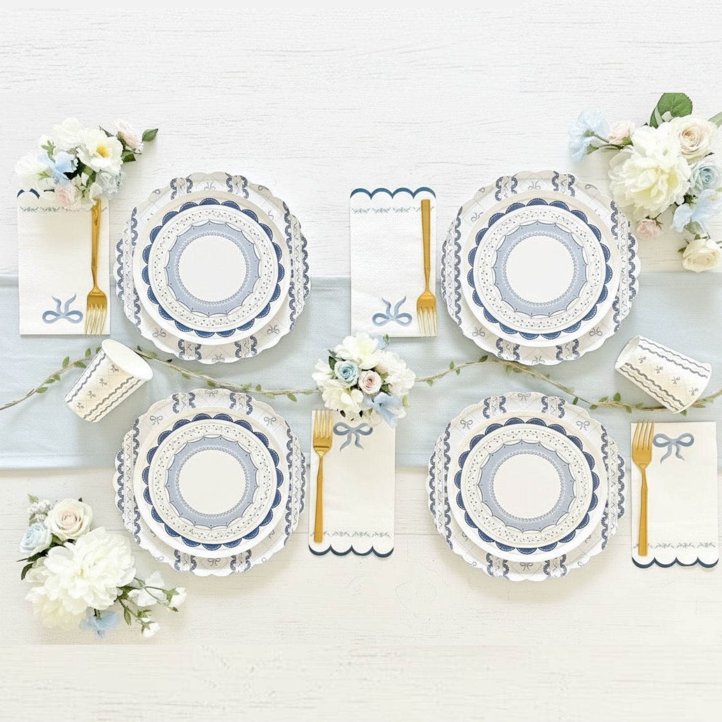 Coquette Blue Party Supplies in a Box, soft pastel blue aesthetic perfect for charming celebrations.